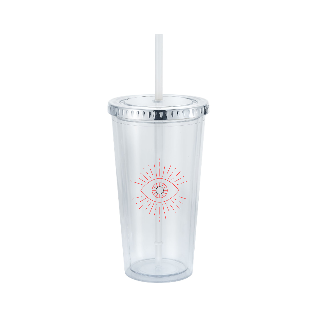• Double wall clear acrylic tumbler with clear straw