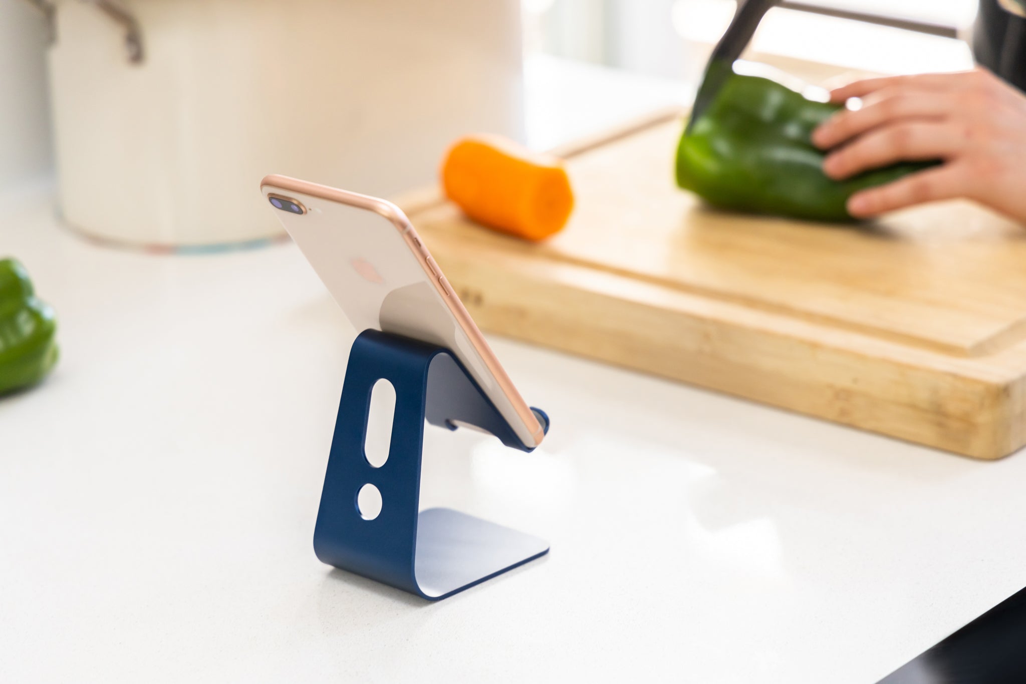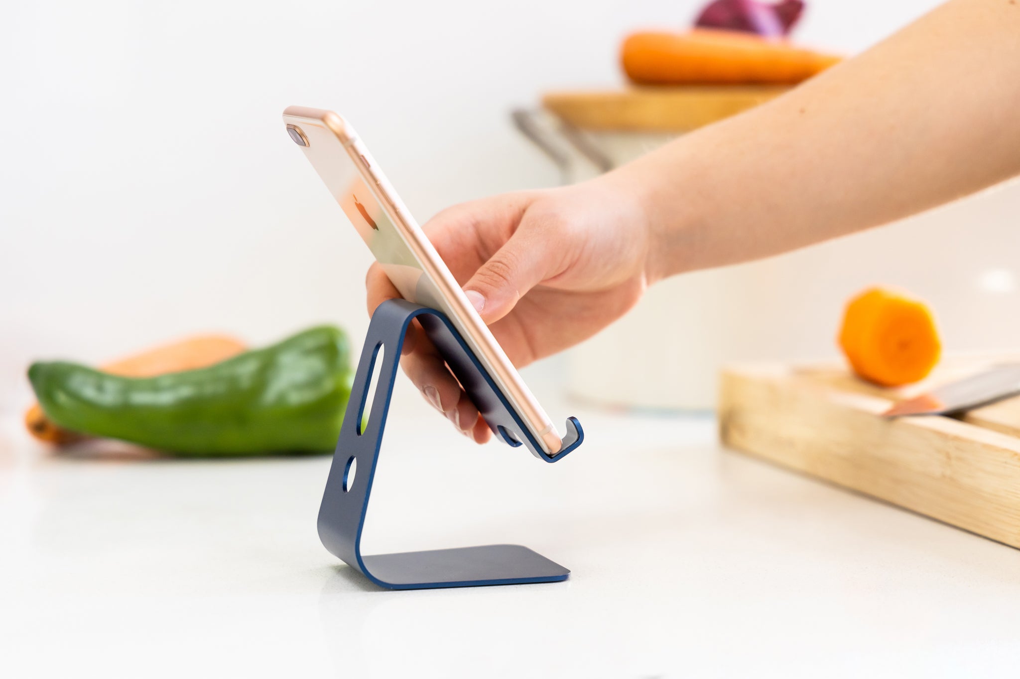 - Charge your phone while you use it utilizing the cord opening on the back of the stand