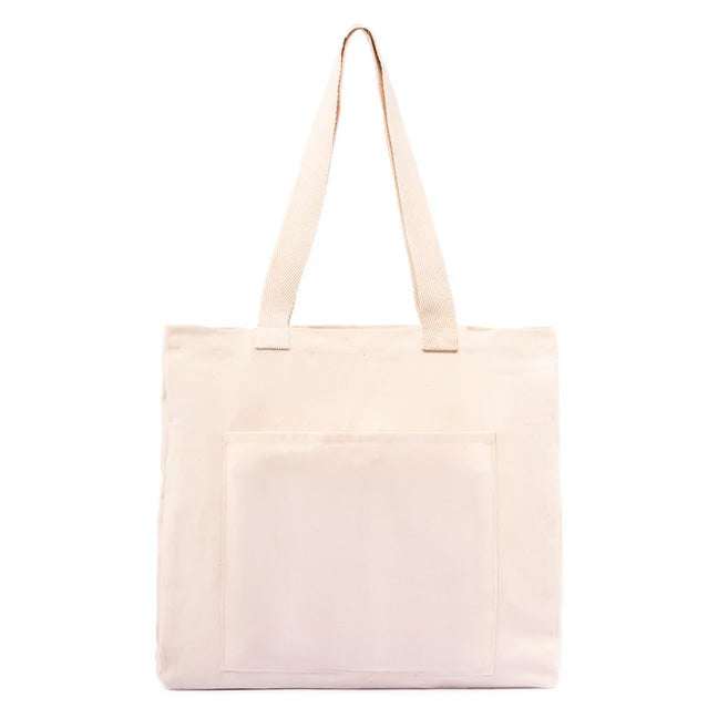 - 12 oz tote with 4" gusset, large front pocket and 28" handles