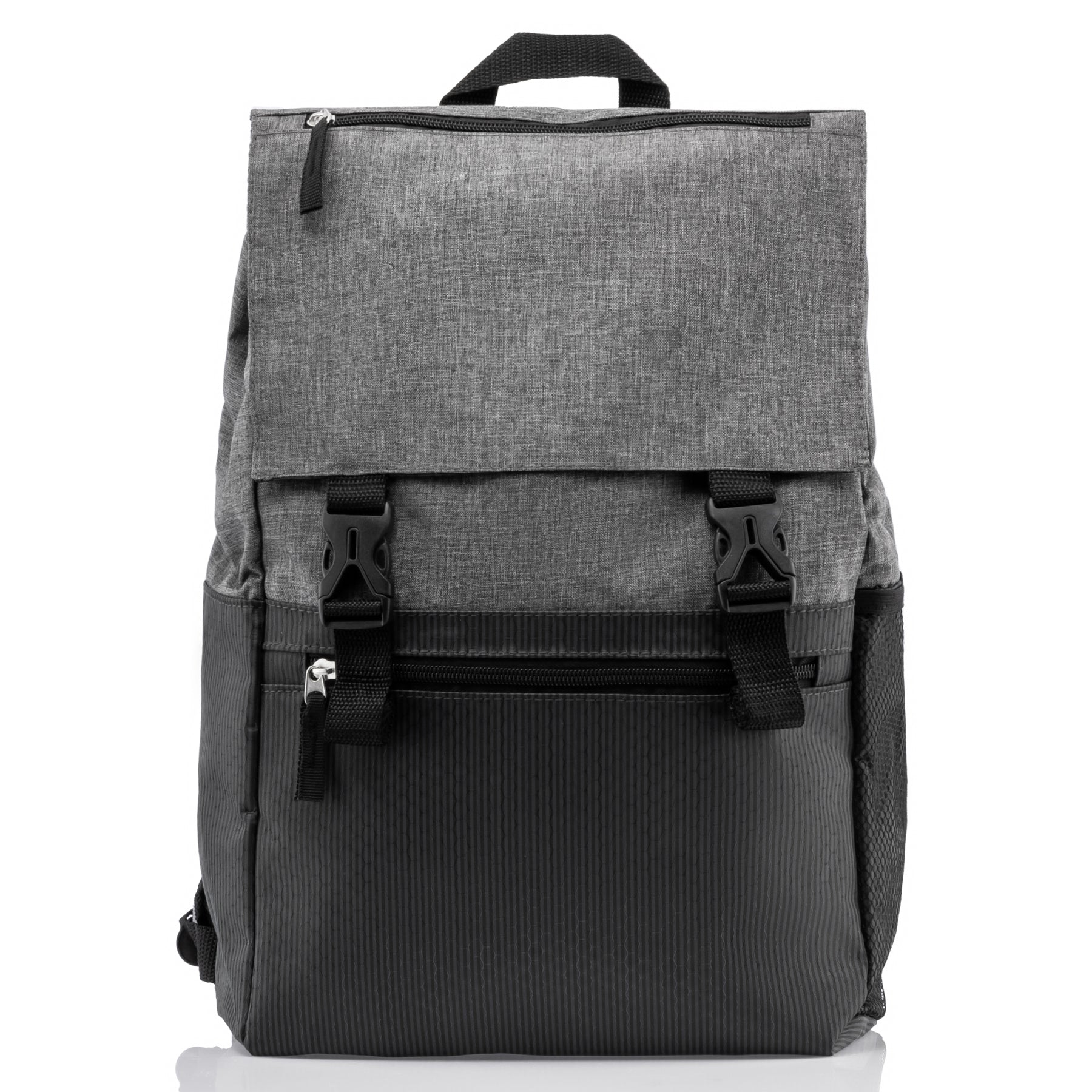 - Mesh water bottle holder on one side