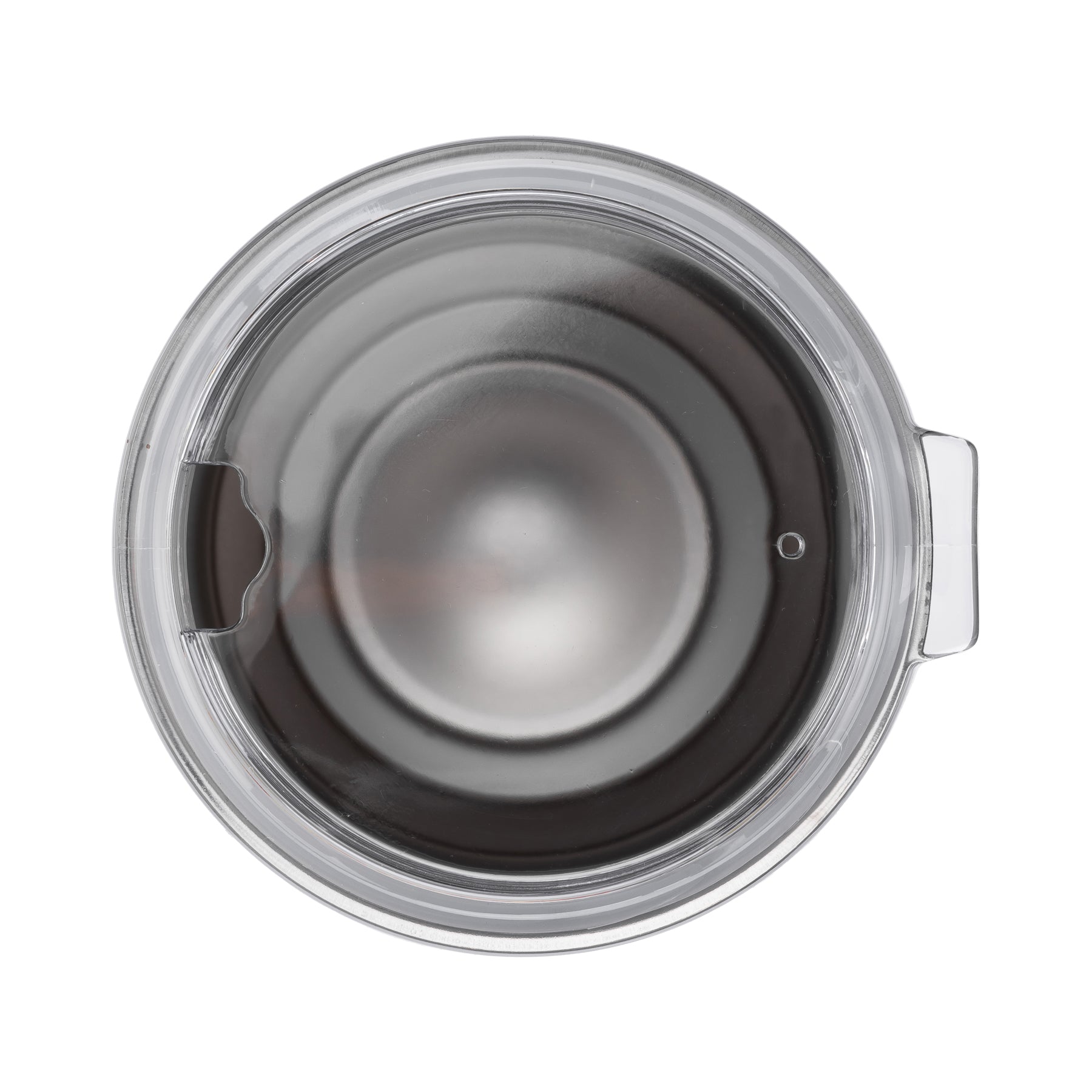 - Acrylic screw-on sip lid with straw opening and wide mouth for ice