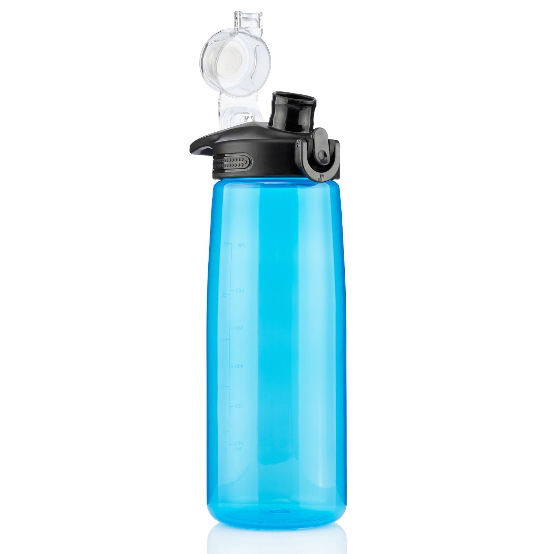 - Carry handle loop molded into lid Includes volume measurement marks on the translucent color bottle, making it easy to meet your hydration goals