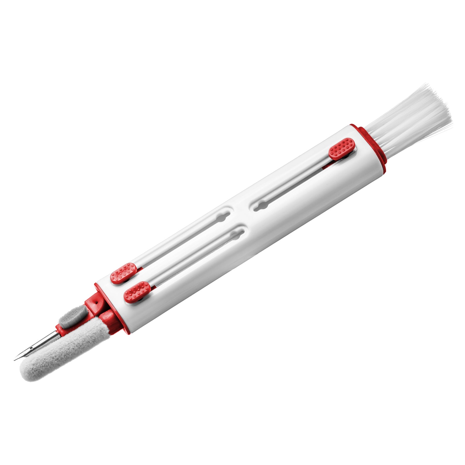 - 4-in-1 lightweight, portable electronic cleaning tool for a variety of devices such as earbuds, keyboards, and cellphones