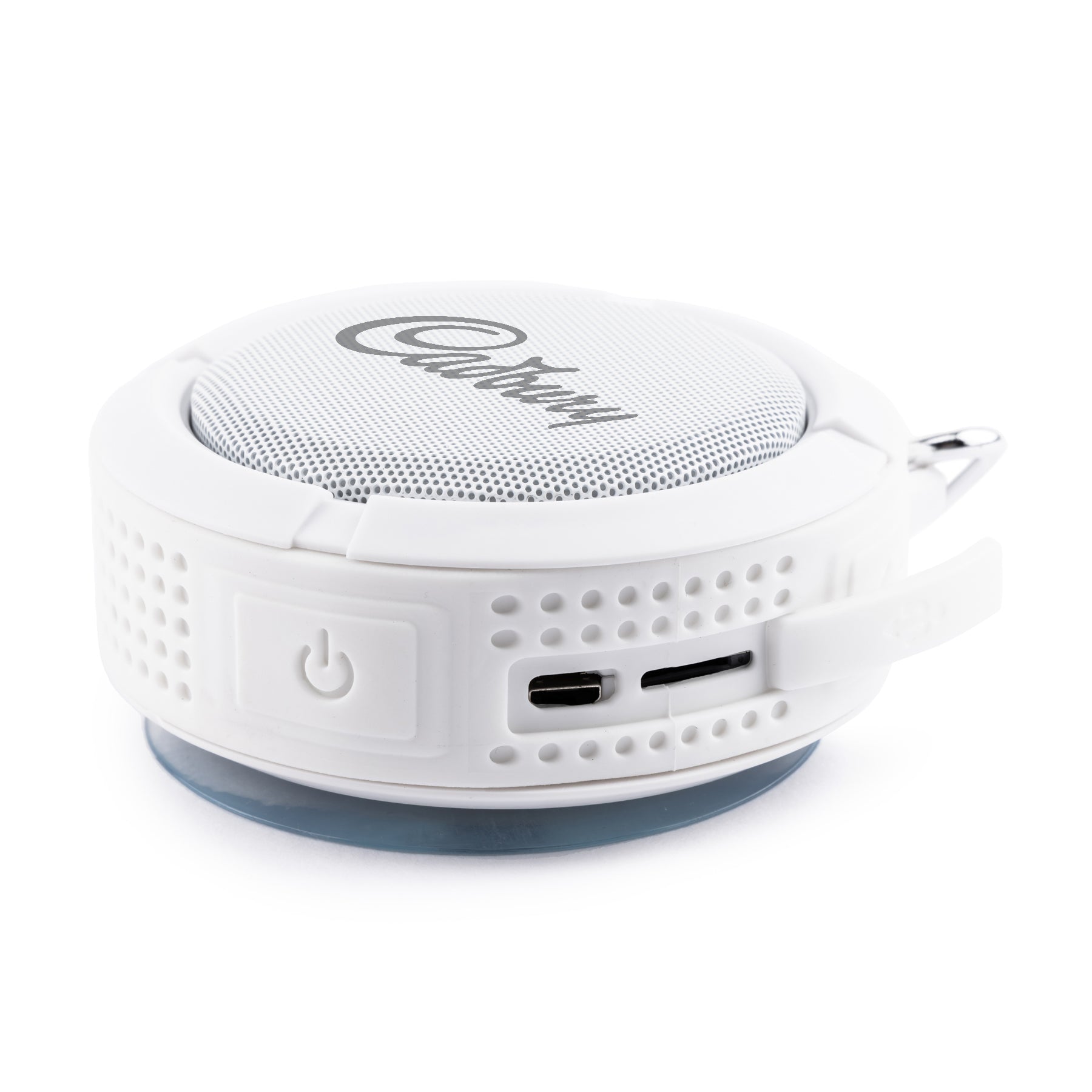 - Removable carabiner clip for hanging on hooks as well as suction backing