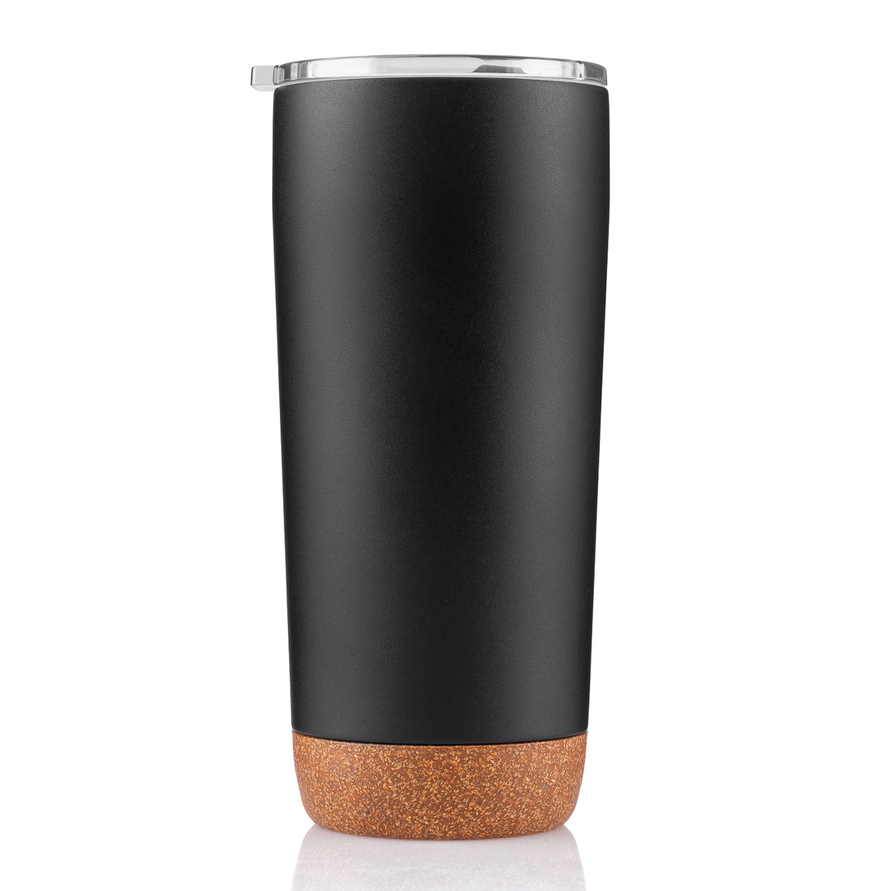 - 20 oz double wall 18/8 stainless steel thermal tumbler with stylish synthetic cork bottom to protect surfaces from scratches