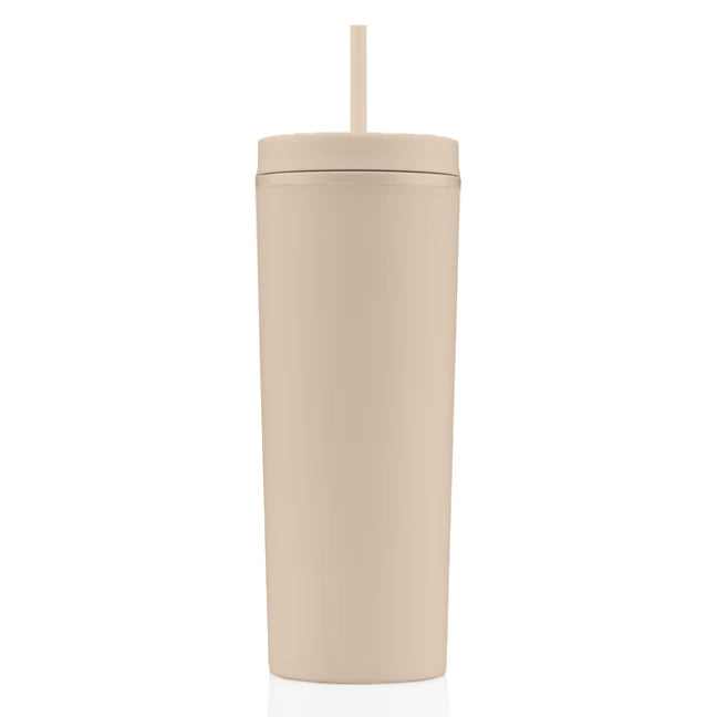 - 18 oz tumbler made from 100% recycled SAN plastic