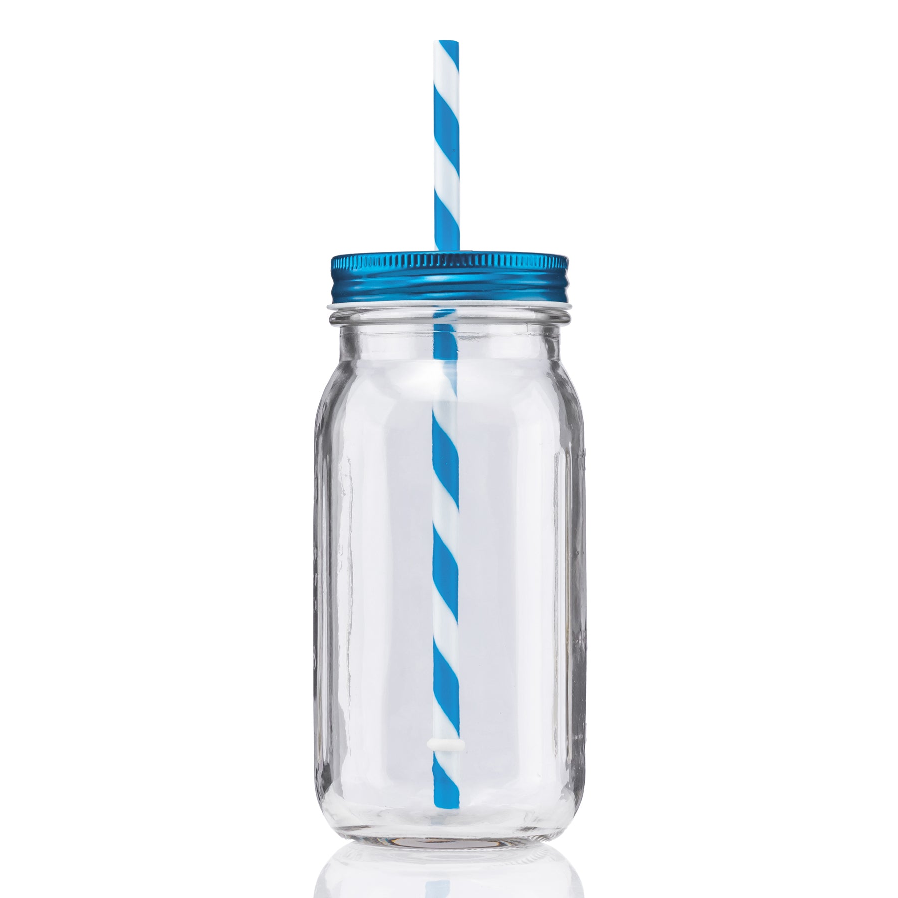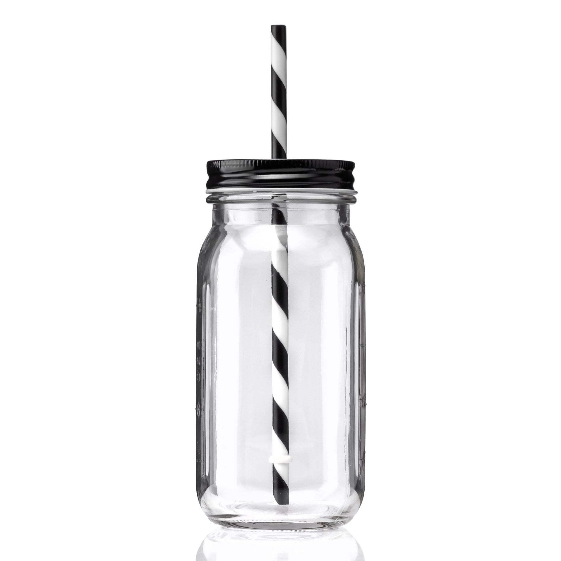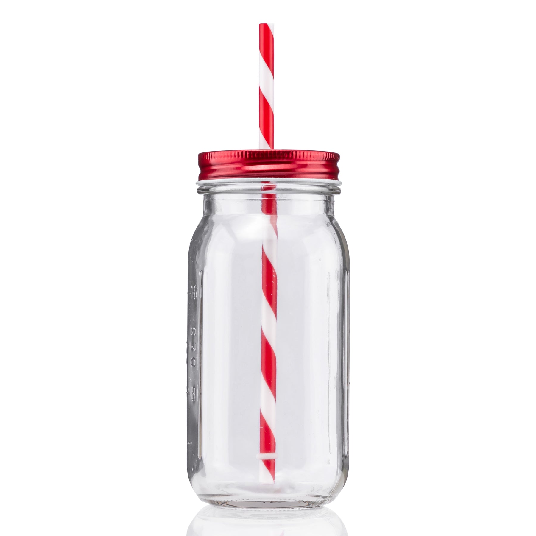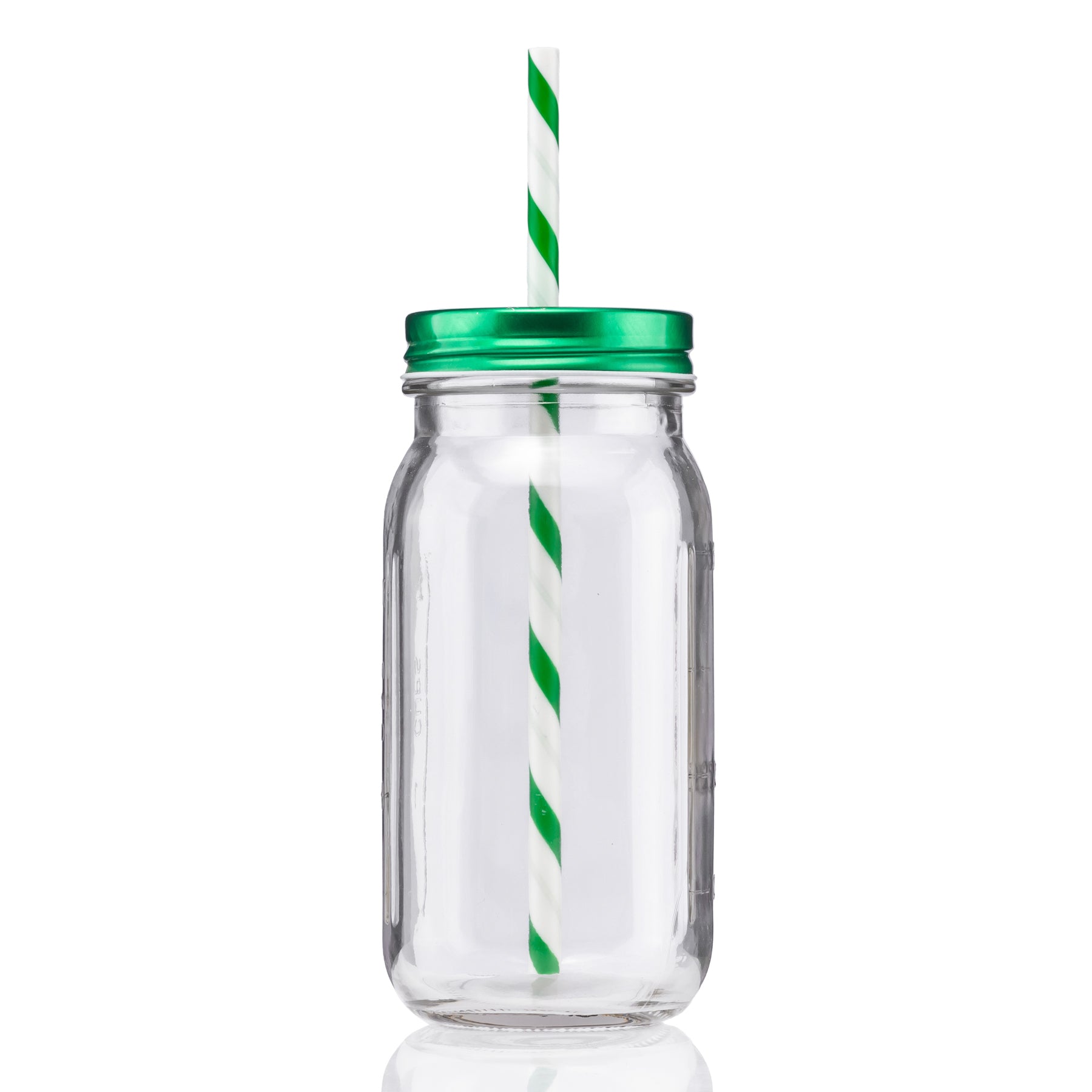 - 20 oz vintage mason jar with striped straw and choice of color lid