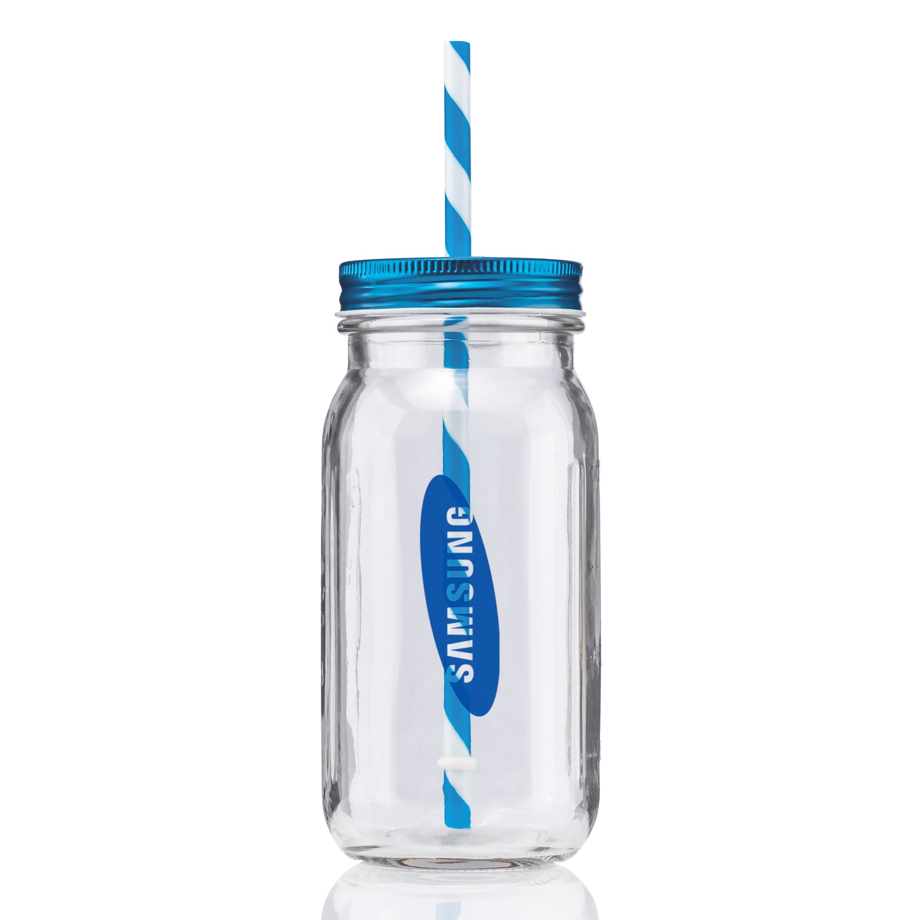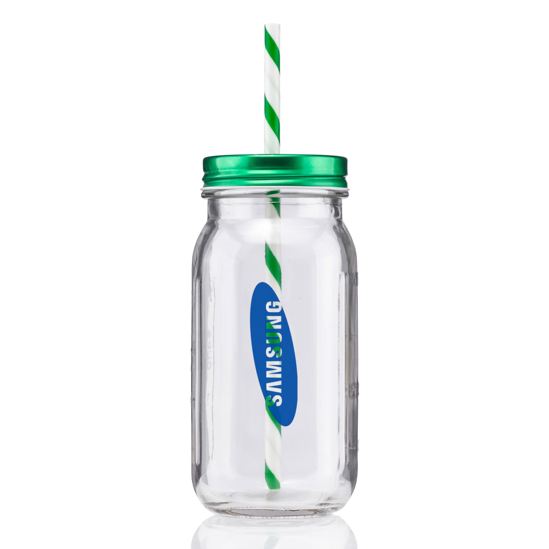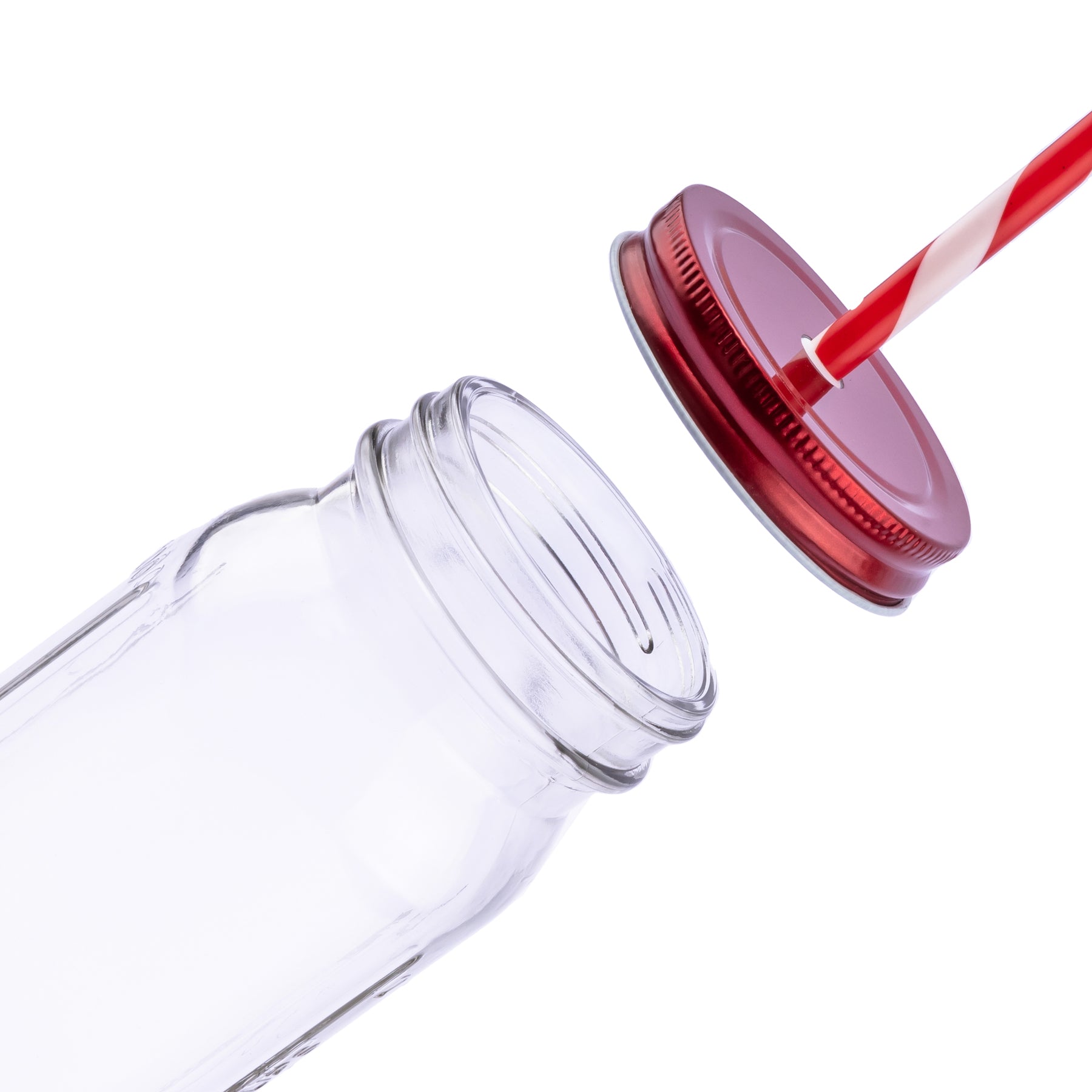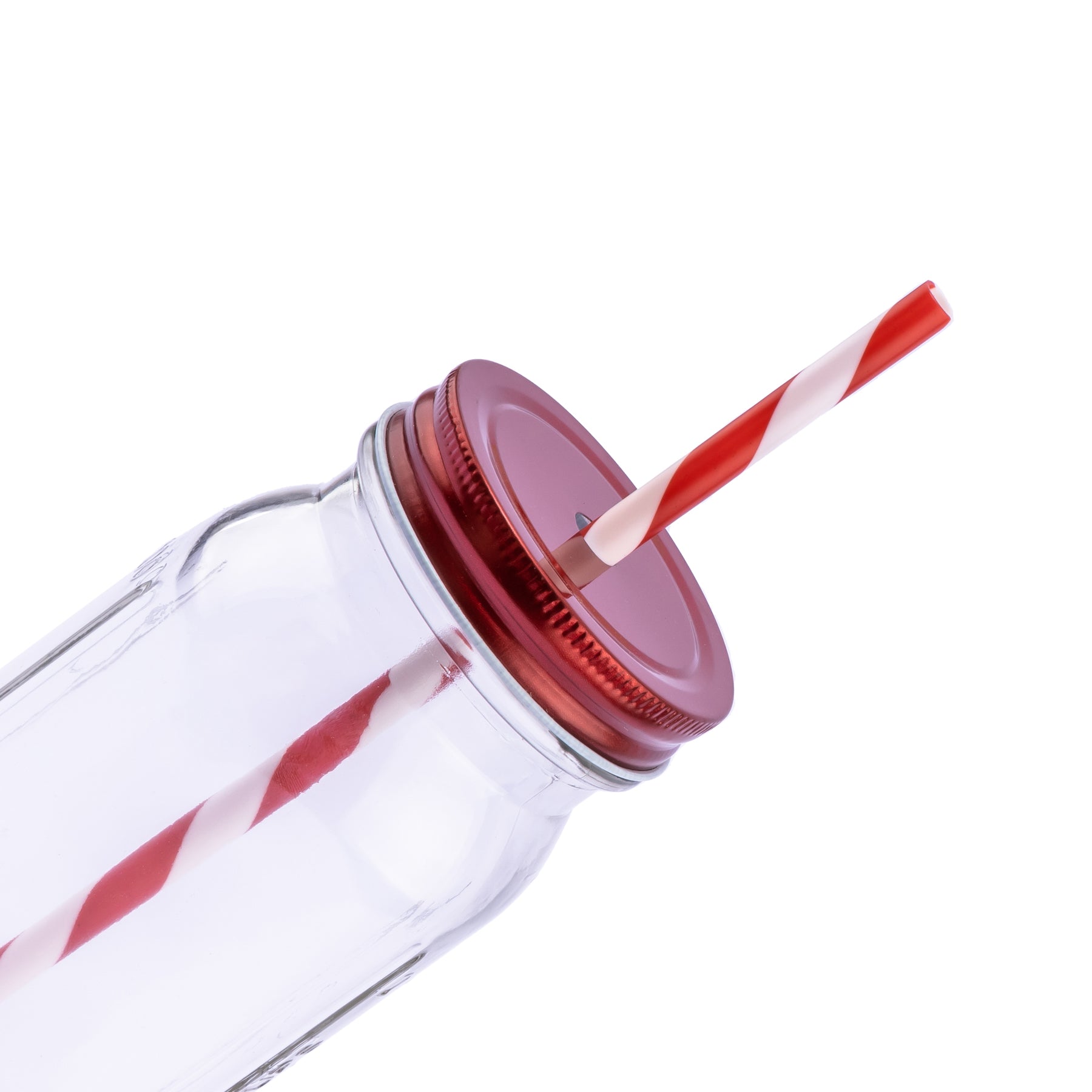 - 20 oz vintage mason jar with striped straw and choice of color lid