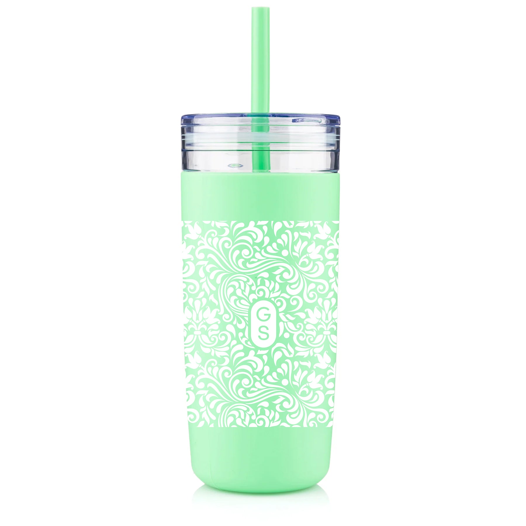 - 32 oz acrylic tumbler with easy grip silicone sleeve and matching silicone straw