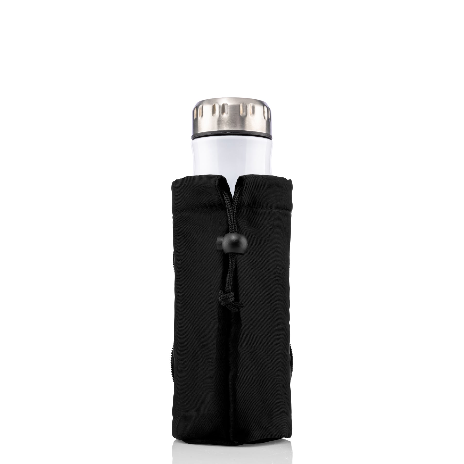 - Easily slide the bottle pouch into the bag folded or onto the belt with a bottle